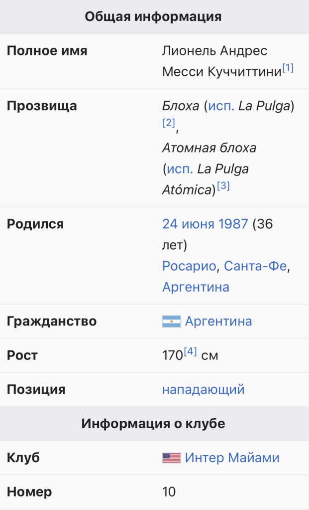 Лионе́ль Андре́с Ме́сси Куччитти́ни[a](исп.Lionel Andrés Messi Cuccittini, испанское произношение: [ljoˈnel anˈdɾez ˈmesi] ( слушать); родился 24 июня1987, Росарио, Аргентина) — аргентинский футболист, нападающий и капитан клуба MLS«Интер Майами», капитан сборной Аргентины. Чемпион мира, чемпион Южной Америки, победитель Финалиссимы, олимпийский чемпион. Считается одним из лучших футболистов всех времён[7][8][9].